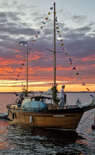 The trip continues with engine, or in suitable weather, with sails to the sauna island, where you may have booked